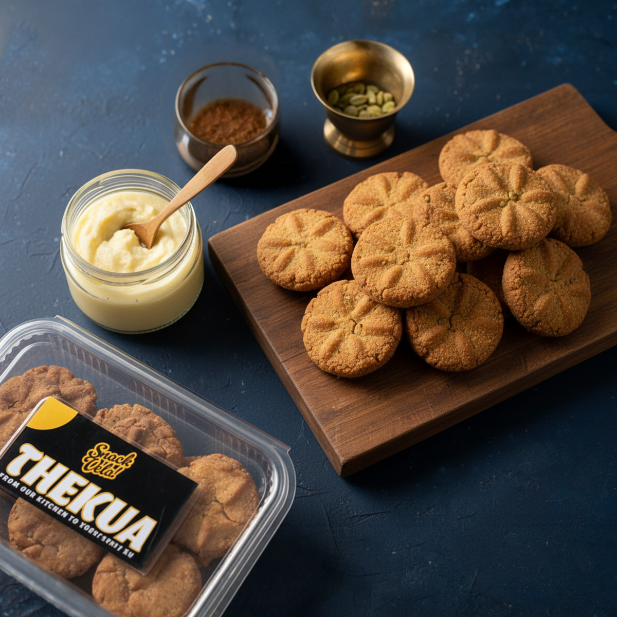 Golden brown thekua made with wheat flour, suji and pure desi ghee. Mildly sweet, perfectly crunchy and full of traditional flavor.