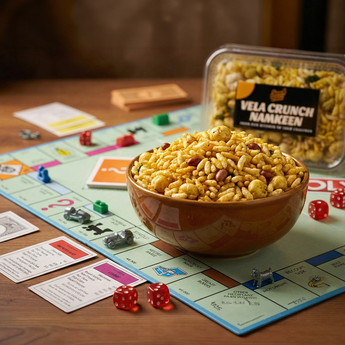 Crispy and savory vela crunch namkeen with peanuts, murmura and a delightful blend of flavors. Ideal for munching anytime.